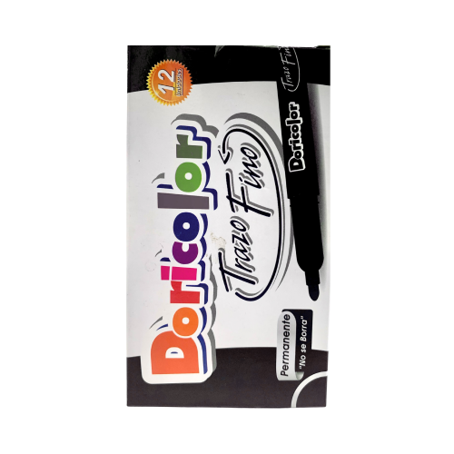 El Marcador Doricolor Delgado Permanente Negro es un marcador de alta calidad con tinta permanente de color negro, ideal para trabajos que requieren precisión y durabilidad. Su punta delgada permite realizar trazos finos y detallados, lo que lo hace perfecto para escribir, dibujar o hacer anotaciones en espacios pequeños. La tinta es resistente al agua y a la luz, garantizando que los trazos no se desvanezcan con el tiempo. Es adecuado para una variedad de superficies, como papel, cartón, plástico, metal y vidrio. Ideal para usar en oficina, escuela, manualidades y proyectos artísticos.