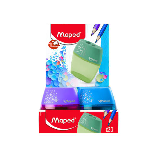 El Sacapuntas Maped Shaker Doble es una herramienta ergonómica y funcional diseñada para afilar lápices de diferentes grosores. Cuenta con dos orificios: uno para lápices gruesos y otro para lápices finos, permitiendo una mayor versatilidad en su uso. Su diseño incluye una navaja de metal de alta calidad y un depósito de plástico con gran capacidad, facilitando la recolección de las virutas y manteniendo el área de trabajo limpia.