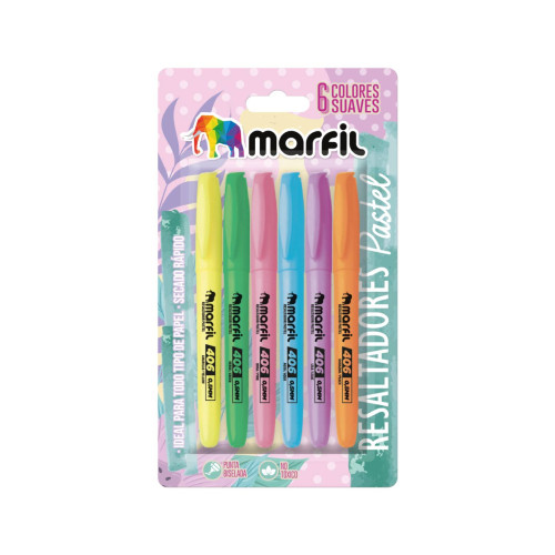 Resaltador Delgado Pastel Marfil X6 0,5MM Colores Lila, Agua, Rosa, Verde, Durazno, Amarillo