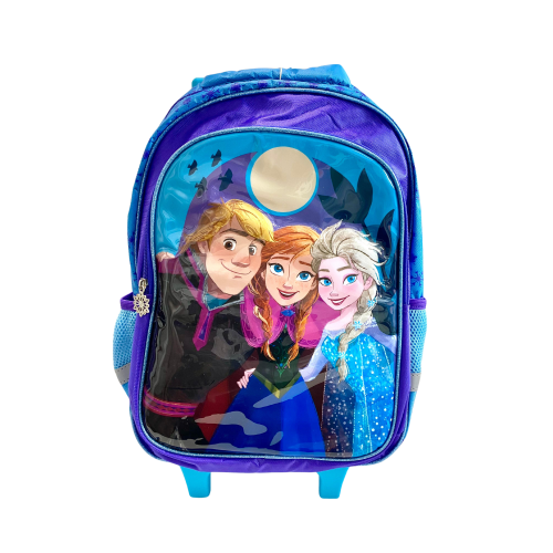¡Este morral con rueditas de Frozen es la elección perfecta para las pequeñas fanáticas de Elsa y Anna! Con un diseño encantador y lleno de magia, presenta a las dos princesas más queridas del reino de Arendelle en un fondo de tonos azules, morados y plateados que evocan el espíritu de invierno y la aventura.
