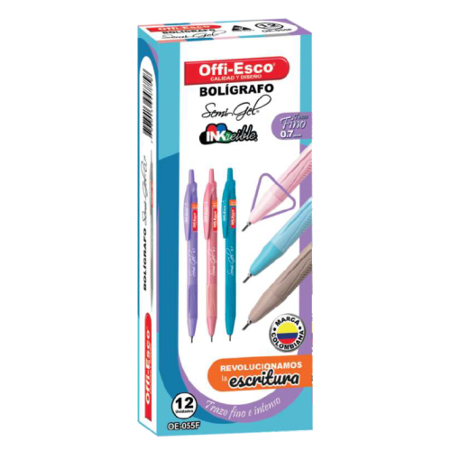 Bolígrafo Offi-Esco retráctil OE-055F 0.7mm X12 negro cuerpo pastel