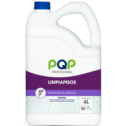 El limpiapisos Lavanda PQP Profesional tiene un alto poder desengrasante, con antibacterial y desinfectante a base de amonio cuaternario, el cual tiene un amplio espectro de eliminación de microorganismos como: Bacillus Subtilis, Pseudomonas aeruginosa, Salmonella tiphymurium y Staphylococcus aureus, que causan malos olores y que, en contacto con alimentos, pueden generar enfermedades gastrointestinales.