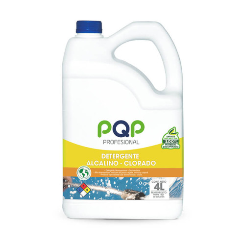 El Detergente Alcalino Clorado PQP Profesional, es un detergente desengrasante y desinfectante de alto desempeño. Es ideal para remover la suciedad y materia orgánica con alta carga de grasa y proteína. Puede ser usado de manera manual, a presión o por espuma en pisos, paredes, equipos y toda superficie lavable y sobre materiales galvanizados, de acero inoxidable y aluminio.