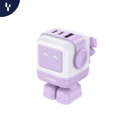 Cargador Ugreen Robot RG De 65W Con 3 Puertos 2XUSB-C 1XUSB-A Color Lila Certificado