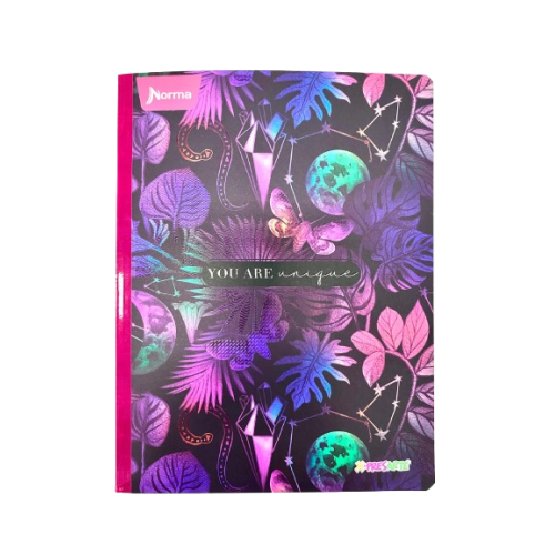 Cuaderno cosido para niñas en tapa flexible y costura resistente al lomo para que no se suelten sus hojas, garantizando su durabilidad. Carátula con plastificado brillante y repuje, con diseños de temáticas variadas en las tendencias de moda. En su interior tiene hoja de stickers impresos a full color para coleccionar, decorar o pegar en donde quieras. 100 hojas - 200 páginas en rayado línea corriente. Tamaño grande. Cuadernos cosidos. Cuadernos escolares. Cuadernos cosidos grandes. Cuadernos grandes.