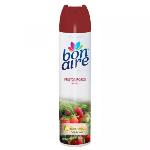 El Ambientador Bonaire Spray 250 ml Frutos Rojos es una excelente opción para mantener tus espacios frescos y perfumados con una fragancia dulce y afrutada. Este aerosol está diseñado para neutralizar los malos olores y crear un ambiente agradable en tu hogar u oficina.