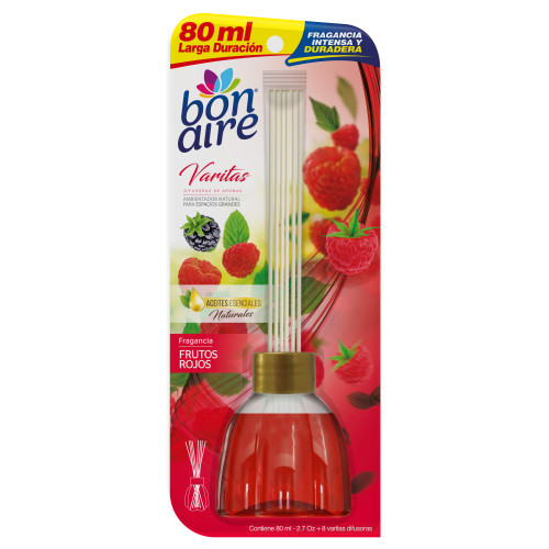 El Ambientador Bonaire Varitas 80 ml Frutos Rojos es una excelente opción para perfumar y ambientar tus espacios con una fragancia dulce y refrescante. Este producto utiliza varitas de madera que, al absorber el aceite perfumado, liberan gradualmente el aroma de frutos rojos, creando un ambiente acogedor en tu hogar u oficina.