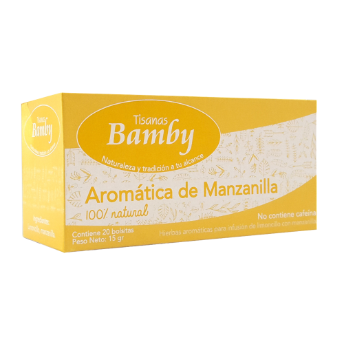 La Aromática Bamby de Manzanilla es una infusión que ofrece una experiencia relajante y reconfortante. Conocida por sus propiedades digestivas y calmantes, es ideal para disfrutar en cualquier momento del día, especialmente antes de dormir.
