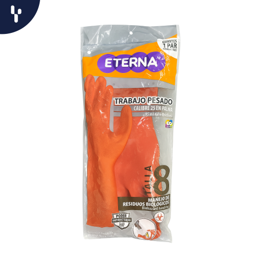 Los Guantes Eterna Rojo Calibre 25 Talla 8 son equipos de protección diseñados para ofrecer seguridad y resistencia en tareas industriales que requieren manejo de residuos biológicos y materiales peligrosos.