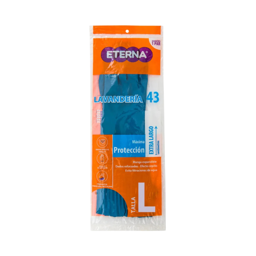 El Guante de Látex Eterna Azul Talla L Largo Lavandería es una herramienta esencial para quienes buscan protección y comodidad durante tareas de lavandería y limpieza. Diseñado para ofrecer resistencia y durabilidad, este guante facilita el manejo de prendas y utensilios en entornos húmedos.