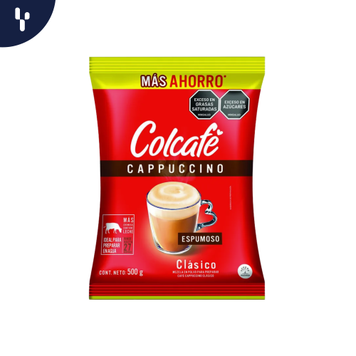 El Café Cappuccino Colcafé Clásico en presentación de 500 gramos es la elección perfecta para quienes buscan un cappuccino con textura cremosa, espumosa y de sabor auténtico. Esta mezcla instantánea está elaborada con ingredientes de alta calidad, garantizando una bebida deliciosa en cada preparación.