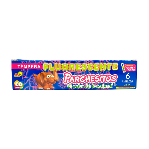 La Témpera Parchesitos Fluorescente X6 Colores es un set que incluye seis colores fluorescentes brillantes y vibrantes, ideales para trabajos artísticos y manualidades. Los colores fluorescentes son especialmente llamativos, ya que brillan intensamente bajo luz ultravioleta o en condiciones de poca luz, lo que les da un efecto muy visual y moderno.