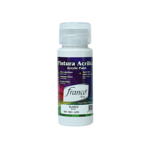 La pintura acrílica Franco Arte 60ml en color blanco es una pintura de alta calidad, ideal tanto para principiantes como para artistas experimentados. Su presentación de 60 mililitros es perfecta para proyectos de pequeño y mediano tamaño, y su consistencia cremosa facilita la aplicación sobre diversas superficies como lienzo, madera, papel, cartón, entre otros.