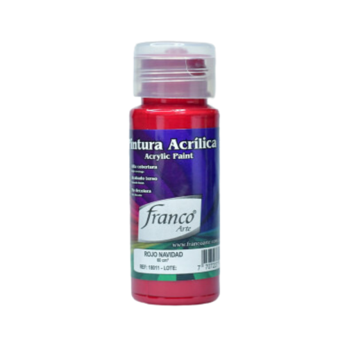 La Pintura Acrílica Franco Arte 60ml en color Rojo Navidad es una pintura de alta calidad, especialmente formulada para ofrecer un acabado liso y duradero. Es ideal para proyectos de manualidades y decoración, proporcionando un color vibrante y una excelente cobertura.