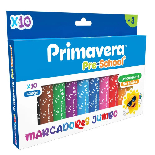 • Marcadores Pre-School Jumbo Primavera x10 Trazo suave lavables