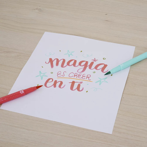 !NUEVO! El kit ideal para que puedas aprender a hacer letras lindas y conocer un nuevo tipo de marcador. Incluye 20 marcadores doblepunta tipo pincel y 10 nuevos marcadores mini brush ¡que son más delgados para hacer detalles más finos y delicados! Trae nueva cartilla con plantillas para lettering by Naty Valencia.