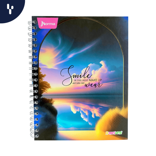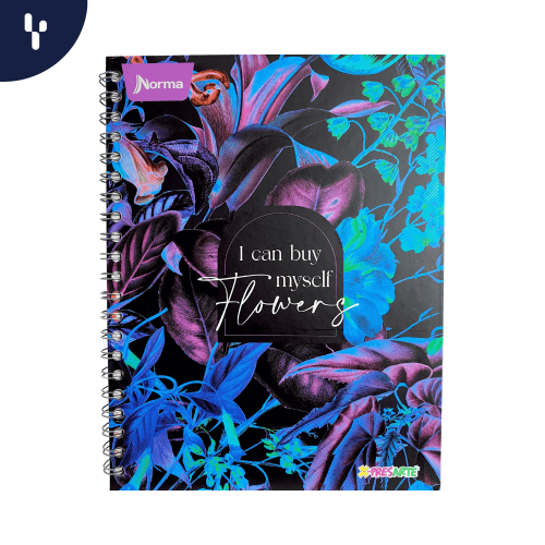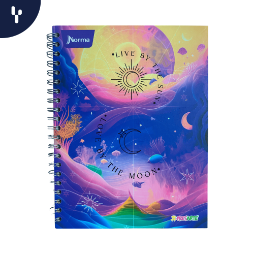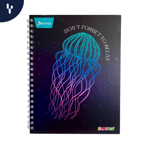 Cuaderno argollado en tapa dura y argolla resistente para que no se suelten sus hojas. Carátula con plastificado mate, barniz alto relieve y diseño impresos en tintas neón en las tendencias de moda. En su interior encontrarás bolsillo cartulina impresa a 4 tintas. 80 hojas - 160 páginas línea corriente. Tamaño grande.