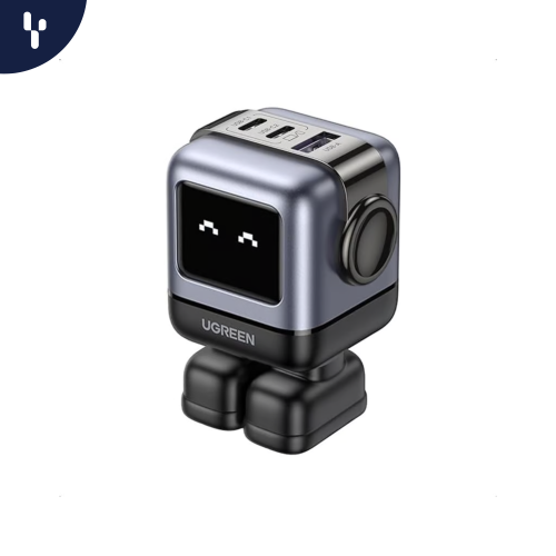 El Cargador Ugreen RG de 65W es la solución perfecta para quienes buscan eficiencia y diseño innovador en un solo dispositivo. Con su apariencia inspirada en un robot y una pantalla LED que muestra expresiones faciales según el estado de carga, este cargador no solo es funcional sino también atractivo. Viene con garantía de 2 Años.