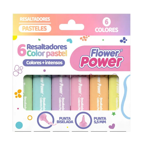 • Resaltadores Color Pastel Flower Power X6 Punta Biselada