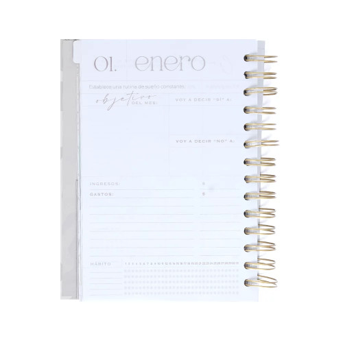 Agenda diaria Kiut. ¡Ideal para quienes dicen que entre más espacio tenga mejor! En su interior encontrarás: Stickers decorativos Stickers funcionales Contrato contigo misma. Página para cada día. Espacio para notas Mapa de sueños Planeador mensual Espacio de agradecimiento Control de gastos y hábitos en cada mes Espacio para escribir los objetivos del año. ¡Y hermosos detalles que te van a enamorar! Cada mes trae un separador que le permite a la usuaria diferenciar mejor entre ellos.