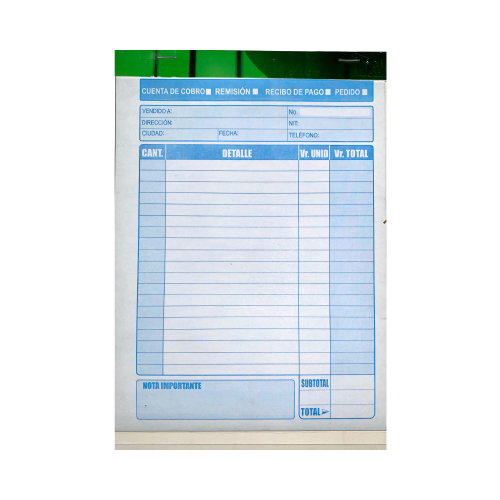 Talonario cuenta de cobro autocopiante grande Forma Económica