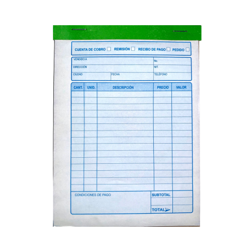 Talonario cuenta de cobro mediana autocopiante x 50 hojas Forma Económicas