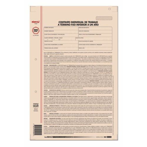 Contrato x 12 unidades trabajo fijo inferior a 1 año Minerva
