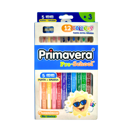 Colores Primavera Pre-School + Sacapuntas 5mm X12 Punta Extra Gruesa