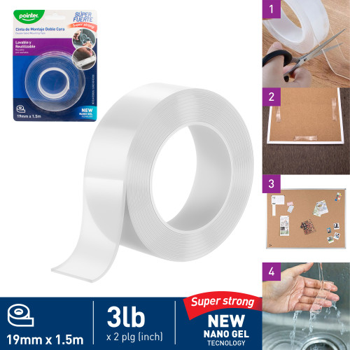 Cinta Pointer doble faz (19mmx1.5mts) siliconada lavable NMT-1915