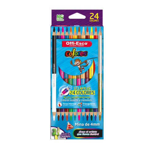 Colores 12/24 doble punta 4mm + Sacapuntas OE-142 Offi-Esco