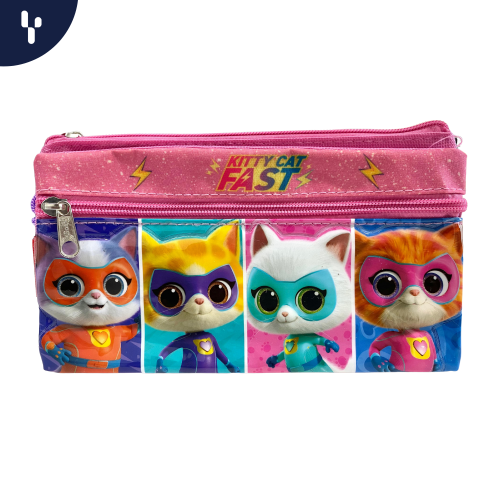 El diseño está adornado con personajes populares o motivos infantiles, lo que hace que sea especialmente atractivo para las niñas. Estos personajes pueden incluir figuras de dibujos animados, princesas, animales, o elementos de la naturaleza. La cartuchera está fabricada con materiales resistentes, asegurando durabilidad, y es de tamaño compacto, lo que facilita su transporte en mochilas escolares.