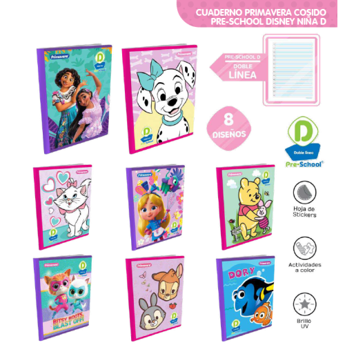 Cuaderno cosido 100 Hojas Mi primer cuaderno D Doble línea Disney niña